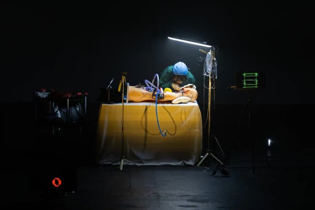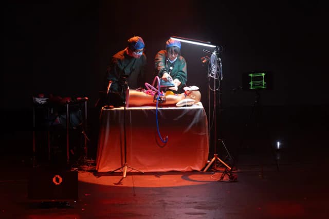 Bio-Amendment is a multimedia performance that will interrogate this very process by exaggerating the obsession of technology into the integration into the human flesh, dramatizing the metaphorical transformation of the human body into a cyborg instrument through a staged surgical process. The performance will be constructed with performers acting as surgeons, conducting “surgery” on a non-living anatomical model. Multiple sensors and cameras will be installed to capture performance actions and are then used for sound making.